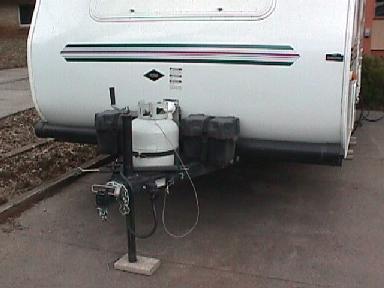 I built a 6" ABS sewer pipe holder and mounted it on the tongue in between my