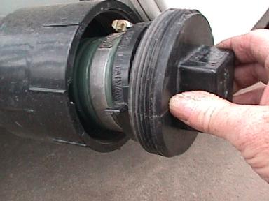Doing this means I do not have to remove this coupling to put the hose into the pipe.  The coupling will go in deep enough that the cap threads all the way in flush, and just finger tight.  The cap fits over the coupling so i use the cap to push the hose into the pipe.